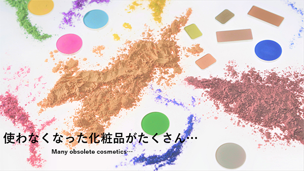 手持ちの化粧品だけでは色数が足りないという人でも大丈夫。化粧品企業が製造の過程で生み出し廃棄されるされるはずだった化粧品素材が、8色~32色(※コースによって異なる)の色材セットとして付属しており、このカラーパレットとお気に入りの自作絵具を組み合わせて、作品作りを楽しむことができる。