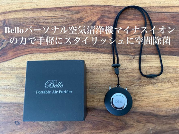 「Bello PORTABLE AIR PURIFIER」はマイナスイオンの力でスピーディーに空間除菌ができるアイテム。広東省微生物分析検査センター分析結果から、空気中のバクテリア等微生物の繁殖を防ぐことが証明されているという。マイナスイオン発生器により空気中の微生物や埃、タバコの煙などに吸着分解するため、フィルターを通さない。そのためフィルターの交換や洗浄などのメンテナンスが不要だ。リチウムイオンバッテリー搭載で、繰り返し充電して使える。
