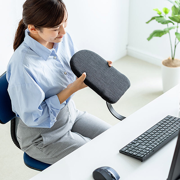 「100-TOK007BK」のサイズは約W210×D420×H137mmで、重量は約910g。総耐荷重は5kgとなっている。長時間使用しても疲れにくいようクッションが入っており、表面は肌触りの良い布張り。