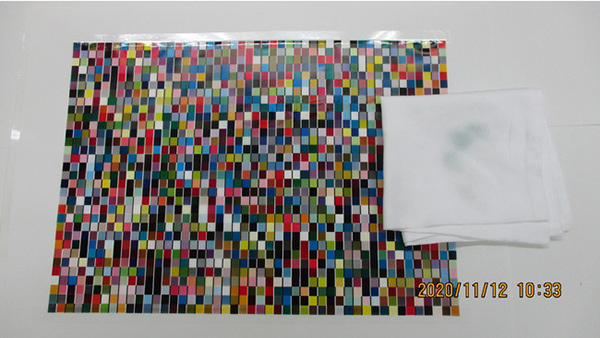 菓子包装などのフィルム包装材の多くは複層フィルムの間に印刷する方式が採用されているが、パンの包装材料などではフィルムの外側に印刷し、紙の印刷と同じく手に触れるところにインキが存在する「表刷り」が主流。通常は包装材のインキが落ちることはほぼないが、エタノールで消毒した手でパッケージを触ったり、消毒液を直接噴霧した包装材をテーブルに置いたりすると、消毒液によってインキ塗膜が溶解し、手やテーブルクロスにインキが付着するケースが確認されているという。