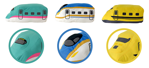 ラインナップは子どもたちに人気の高い「はやぶさ」「かがやき」「ドクターイエロー」の3種の新幹線。各新幹線の特徴的な形態を考慮しつつ型紙を起こし、表現の難しかった運転席部分には別綿を追加。布団を少しずらして畳み、収納することで新幹線の先端部分が表現できるようになっているので、新幹線に詳しいお子様も大満足間違いなしである。