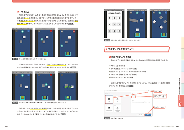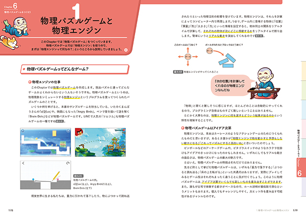 序盤4章まででC#の概念を習得し、5章でシンプルな脱出ゲーム、6章で物理演算を使ったゲームをつくり、7章でアプリ公開の方法を習得するという流れだ。C#がわからず挫折した経験者でも本書なら大丈夫。プログラミング知識ゼロからでも学べる、楽しいゲーム開発の本になっている。