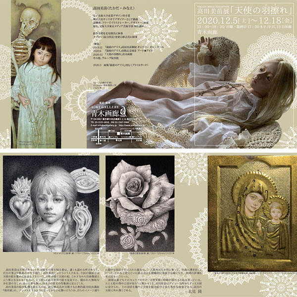 2020年12月5日(土)から12月18日(金)まで、青木画廊にて、高田美苗氏の個展「天使の羽擦れ」が開催される。同氏は、画家として活躍しながら、宝塚大学東京メディア芸術学部で教鞭をとる専任講師。本展では、タブロー(混合技法)、鉛筆画、人形、オブジェなどが出品される。会期中の休廊日は12月9日(水)と12月13日(日)で、開廊時間は12:00〜18:30(日曜と最終日は17:00閉廊)。