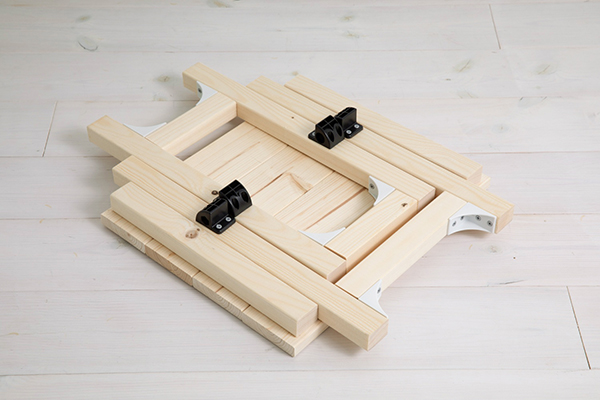 「DY-005 Xジョイント」は部材に取り付けるだけで折りたたみ機構を作れるパーツ。穴あけと部材の固定をひとつの工程にまとめることができるため、初心者でも簡単に折りたたみ機構のDIYに挑戦することが可能だ。カラーはホワイト、ブラックの2色で展開する。