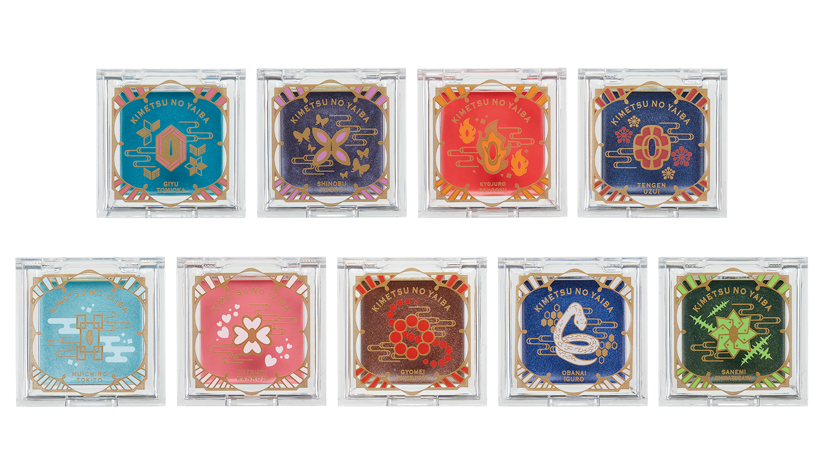 竈門炭治郎、竈門禰豆子、我妻善逸、嘴平伊之助、栗花落カナヲ、玄弥、珠世、愈史郎、村田の9人をイメージしたオリジナルブレンドカラー。クリームタイプの質感で、カラーによってはアイシャドウ、チーク、リップ、ハイライトなどマルチに使用することができる。