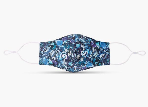 マスクのカラーはブルーとピンクの2色で、柄は大粒の宝石を敷き詰めたかのようなデザイン。