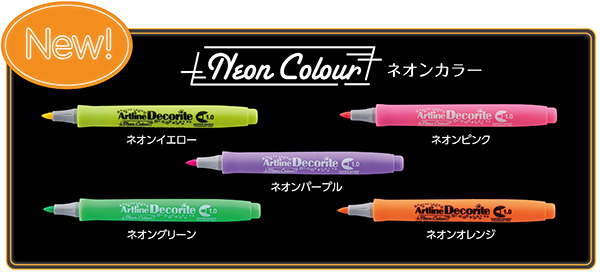 ガラスにも描けるデコレーションペン「アートライン デコライト」に5色のネオンカラーが登場