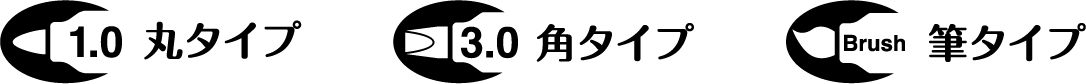 今回新たに発売される色は、ネオンカラーの「ネオンイエロー」「ネオンピンク」「ネオンパープル」「ネオングリーン」「ネオンオレンジ」の5色。それぞれ「1.0丸タイプ」「3.0角タイプ」「筆タイプ」という3つのペン先が用意されており、好みの色とペン先を選んで購入することができる。