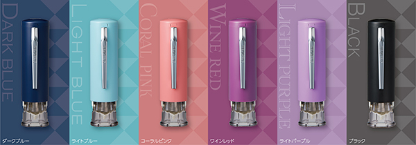 本体色は流行を取り入れた「ダークブルー」「ライトブルー」「コーラルピンク」「ワインレッド」「ライトパープル」「ブラック」の全6色を用意。クリップ部分には強度と高級感をあわせもつ金属クリップが採用されている。