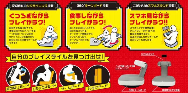 株式会社ドン・キホーテは、ゲームプレイ時に床に座ってプレイするスタイルのゲーマー用アイテムとして、ゲームミング座椅子「スワゲーPRO」を発売開始している。価格は4,990円(税別)。