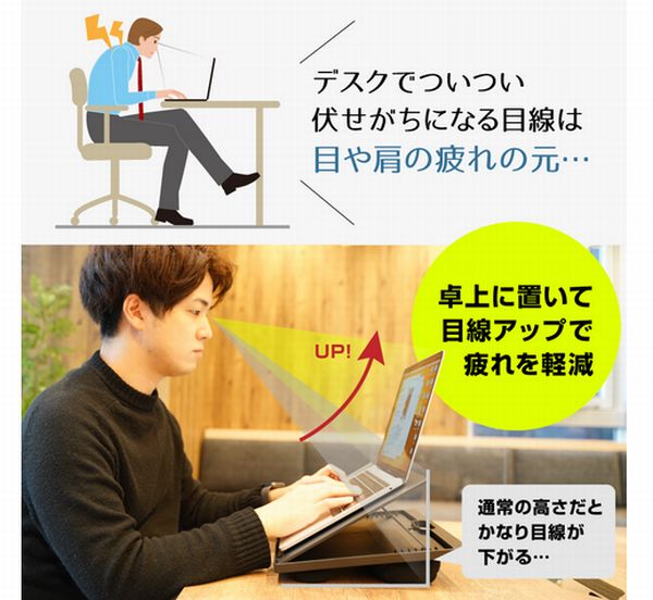 ひざ上でノートパソコン作業する人向けの「ひざ上クッション付PCスタンド」発売