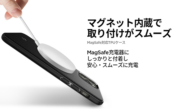 Spigenは1月6日、iPhone 12 シリーズ向けMagSafe対応ケースの発売を発表した。MagSafe充電に対応したTPU素材 を使用したケース。Amazon.co.jpにて、2,990円(税込)で販売する。
