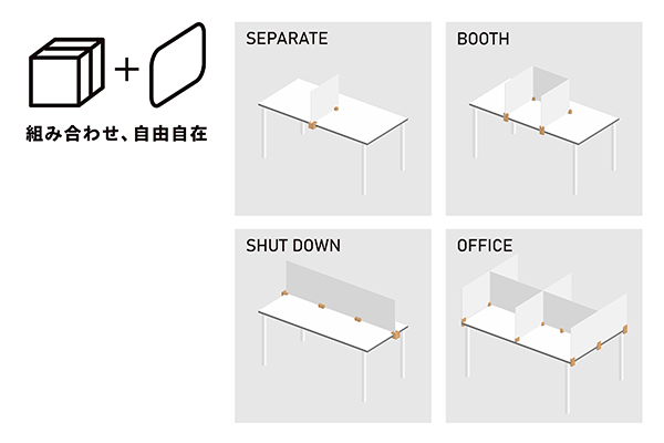 好きな土台やパネルを組み合わせて使える卓上パーティション「SASAUシリーズ」が登場