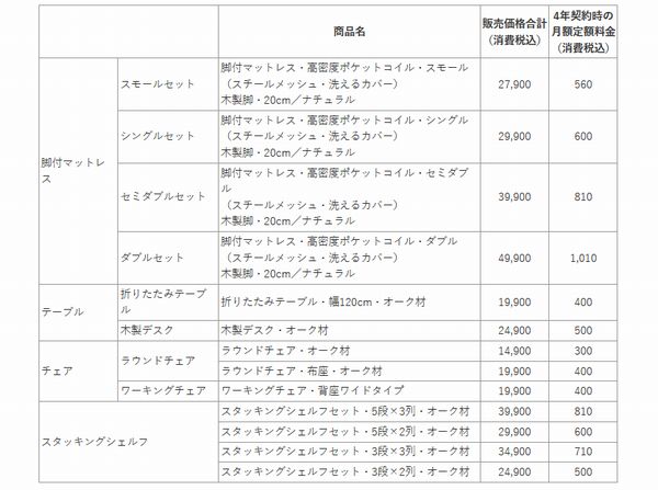 株式会社良品計画は、無印良品が販売するベッド、デスク、チェア、収納用品などの家具について、月額定額で提供するサブスクリプションサービスを、日本国内182店舗で1月15日から開始している。