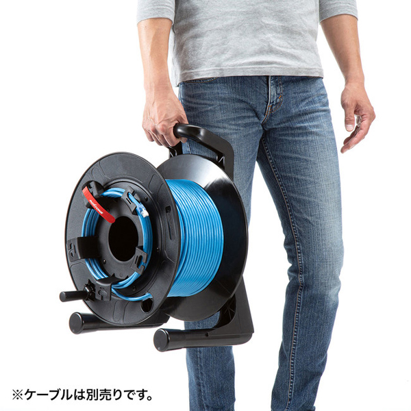 同製品は、光ケーブルやLANケーブル、同軸ケーブルなどのネットワークケーブルを巻取り可能なケーブルリール。ケーブルをドラム中心部の穴を通してから、コネクタを取り付けて加工できる。講義やイベント、セミナーなど広い会場での長距離ネットワークの構築用に適している。