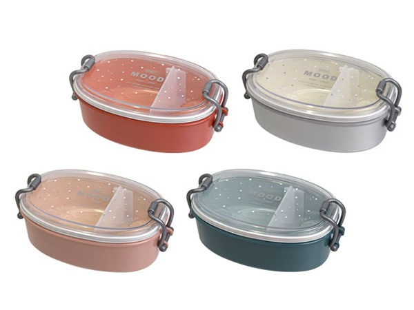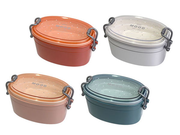 「ムード 抗菌オーバルタイトランチ」の容量は1段サイズが500ml、2段サイズが容量合計610ml。電子レンジ、食洗機にも対応している。カラーバリエーションはピンク、コーラル、ミント、シルバーとなっている。