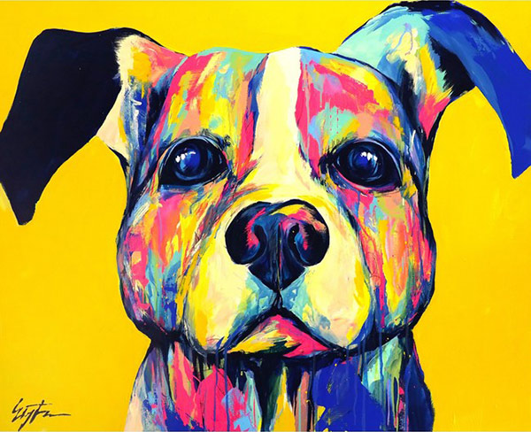 愛犬をカラフルかつポップに描いてもらえる展示会「EIJI TAMURA DOG ART展」