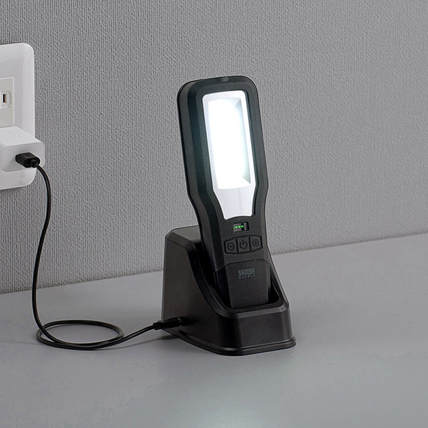 サンワサプライ、先端と前面にLEDを搭載したクレードル式ライトを発売