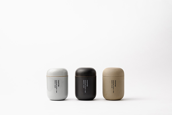 「CHAPTER」は、インテリアのように多様な空間に馴染むミニマルデザインの湯飲み。エッジ加工により、内側に湯の適量位置が測れるラインが入っている。カラーバリエーションは3種類あり、「クリアグレー」「マットブラック」「クレイベージュ」を取り扱う。土に含まれる鉄分と透明釉薬が反応してできた色合いなど、味のある仕上がり。