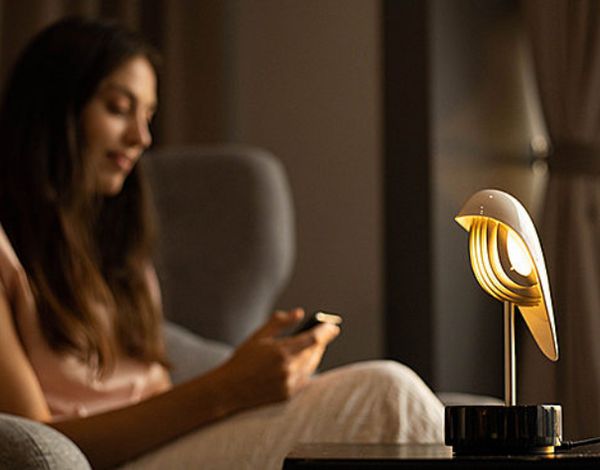 デザインは、緩やかな曲線やつるりとしたカバーで小鳥を模したもので、置くだけで温かみや和みを感じられる。