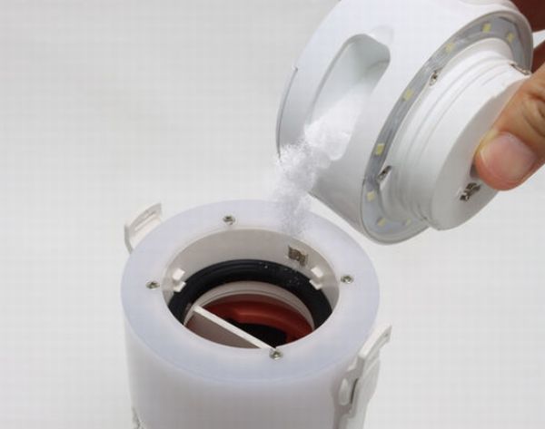発電は、所定の量の水と塩と付属のマグネシウム棒を本体に入れることで電気を得ることができる。(発電量は劣るが海水でも可能)