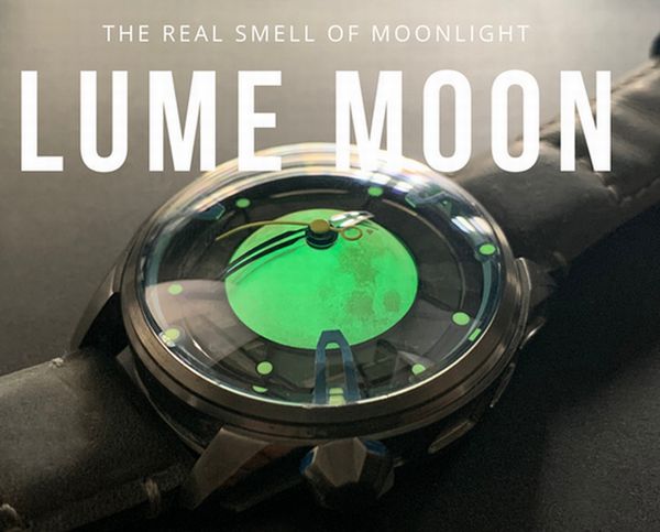 また、流線型の天窓が付く時計ケースやバックル、ケースバックレンズが宇宙船のような流線型デザインで、ダイヤルの中央には、21mmのアルミニウム製の立体の月が浮かぶ。