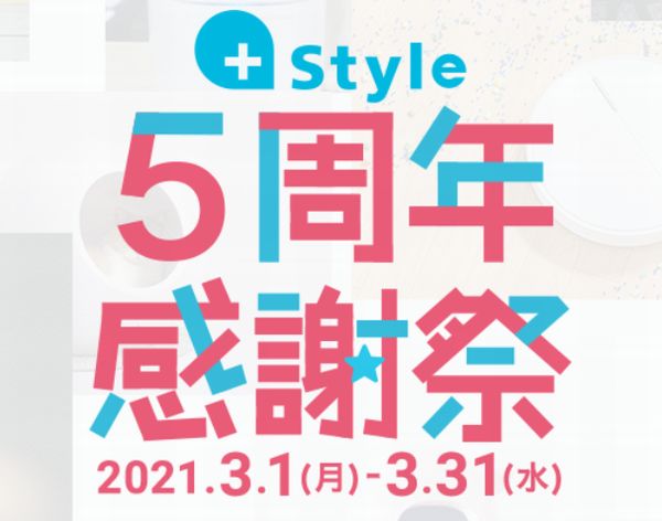 IoT家電を手掛ける+Style(プラススタイル)は、サービスインから5周年を迎えることを記念して、「+Style 5周年感謝祭」を開催している。期間は3月1日~3月31日。