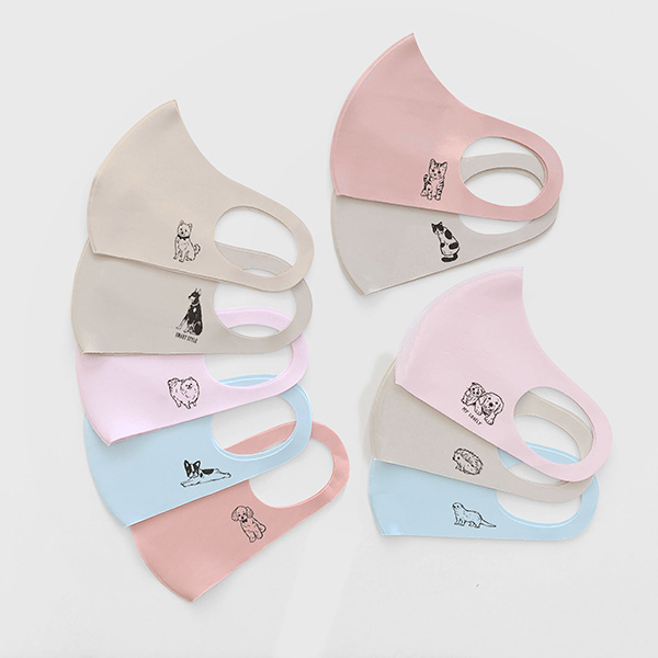 「Animaux」シリーズは、繰り返し洗って使える大人用の3D立体マスク。ワンポイントでプリントした動物がかわいらしい。紫外線を99.9%カットし、快適なつけ心地を備えたプレミアムマスクより登場する新デザイン。犬や猫といった定番の動物だけでなく、ハリネズミやカワウソなどのイラストも採用している。