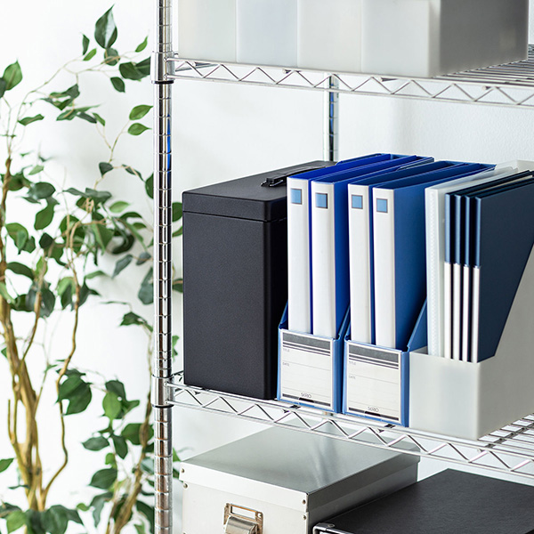 「SL-86」は、A4サイズに対応した書類やファイルを保管できる収納ボックス。リングファイルでもそのまま収納できる大きさだ。収納できる書類の数は、ファイルの厚さが60mmなら2冊、30mmは4冊、15mmは9冊となっている。鍵付きで収納した書類を守るだけでなく、セキュリティーワイヤーを使ってボックス自体の盗難や紛失を防ぐこともできる。
