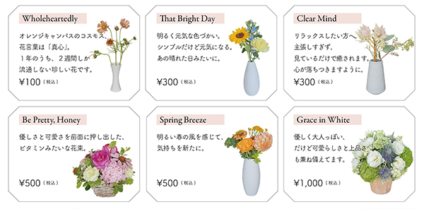 サービス開始当初の花束の商品ラインナップは6種類で、価格は100〜1,000円(2021年3月9日時点での税込価格)。今後も季節やイベントに合わせた旬の花束が、順次に公開される予定となっている。なお、本サービスを使用するためには、贈り先の相手がARCore/ARKitに対応したデバイスを持っていることが必要。決済方法はクレジットカード払いで、発行されたURLの送付は購入者1名につき1回のみとなる。