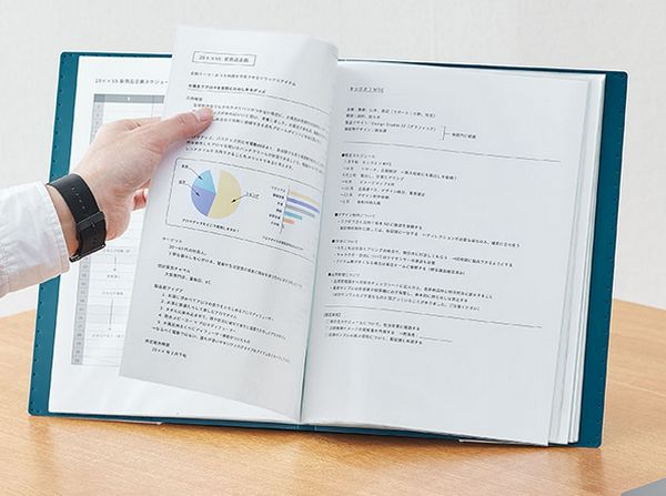 これにより、クリアーファイル内に収納した資料を見やすくなり、デスクの専有面積も少ないので、オフィスでの会議やレシピを見ながらの料理、楽器演奏など、様々なシーンで活用できる。