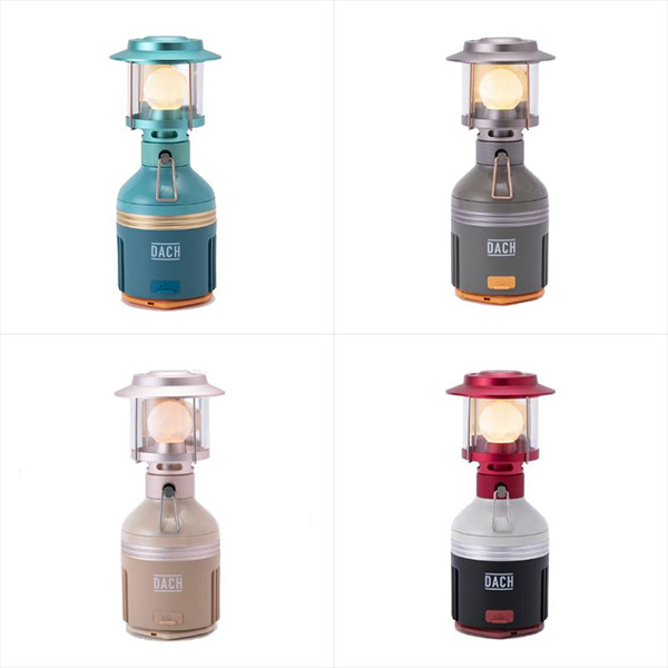 「【モバイルバッテリー付きランタン】ダッチルナー2」のサイズは縦17.8cm×横7.6cm×奥行き7.6cmで、重量は約450g。バッテリーは10,000mAhで、充電時間は6時間、駆動時間は10時間から240時間となっている。防水規格はIPX4。カラー展開は全4種類で、ブルー、グレー、ベージュ、レッドを取り扱う。