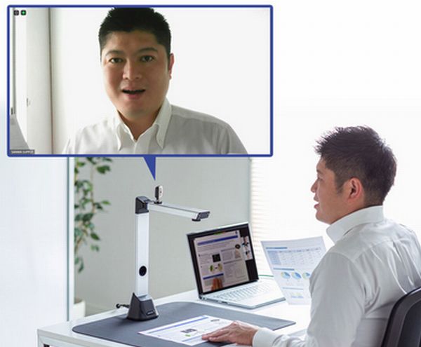 本製品は、台の上に置いた資料や写真などを真上から撮影できる書画カメラ。