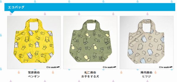 エコバッグは3種類ともキャラクター散りばめデザインで、ファンシーな仕上がりになっている。