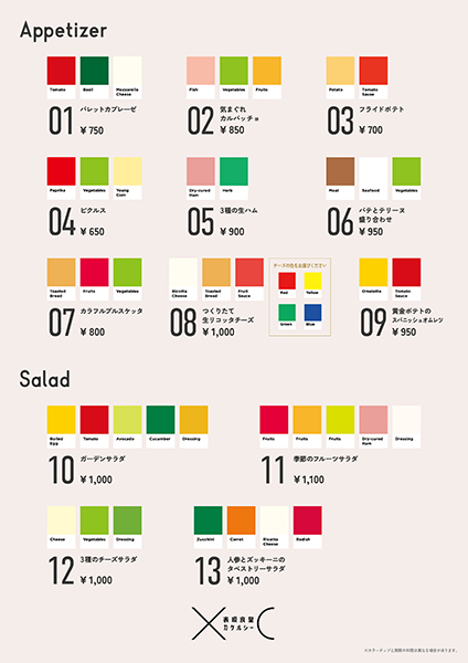 黄身まで白い卵を用いた「白い卵のオムライス」や「色を選べるリコッタチーズ」、ゴッホの星月夜などのアート作品をモチーフにしたノンアルコールカクテルなど、提供メニューもこだわりの内容。カラーパレットをモチーフに製作されたメニュー表も要注目だ。さらに、“アートな感染症対策”を掲げ、オリジナルパーテーションを作成。パーテーションを単に人と人を遮るだけのものと捉えるのではなく、しっかりと空間を彩るものとしてデザインされている。