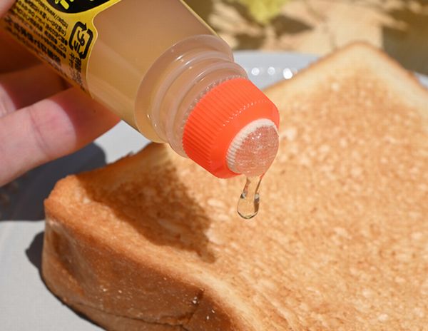 本物の「アラビックヤマト」と同じ容器に70gのハチミツを入れ、使用時はのりと同じ用にヘッドからたらしてパンやパンケーキなどに塗ることができる。