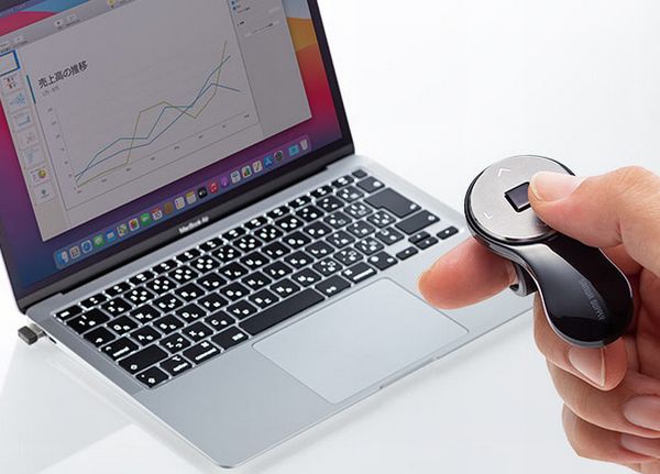 使用例としては、プレゼンでの資料操作用、サブディスプレイ操作用、家でソファーに寝っ転がりながらパソコン操作などが可能。