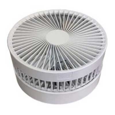 ファンの部分は180°の角度調整が可能で、真上に向けることも可能なため、サーキュレーターのように空気の循環をさせることもできる。また、折りたたむと200×200×95mmとコンパクトに収納できる。
