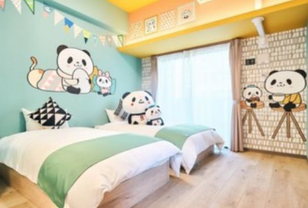 宿泊料金(1部屋1泊)は、「お買いものパンダルーム」ツイン:2名、約25平米、20,000円~(税込)。「お買いものパンダルーム」トリプル:3名、約35平米、20,000円~(税込)。