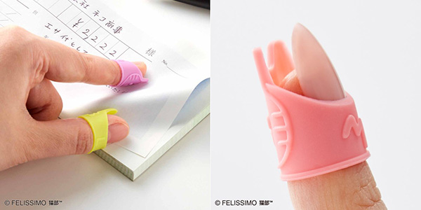 フェリシモ、猫の手を借りた気分で事務作業ができるカラフルな猫型指サックを発売