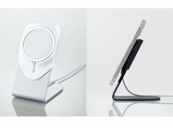 アルミニウムスタンドはMagSafe充電器との組み合わせでワイヤレス充電したり、Web閲覧や動画視聴などに使える。