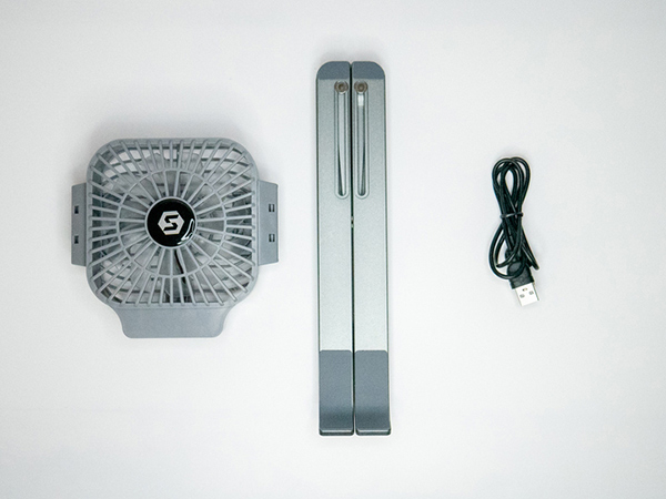 冷却ファンを外して折りたたむとコンパクトになるため、鞄に入れて単独で持ち歩く用途にも便利。ファンの電源はUSB接続で供給でき、製品には冷却ファンのほかに約66cmのUSBケーブルも同梱されている。折りたたみ時の本体サイズは45(幅)×235(高さ)×34(奥行)mm、使用時の幅は最大171mm、フレームの重量は約235gで、冷却ファンの重量は約99g。