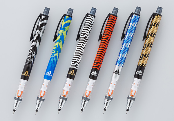 「クルトガ アディダス」は、スポーツブランドの「アディダス」デザインのアイテム。柄は3種類あり、カモフラージュパターン(CP)、ロゴパターン(LP)、サンダーパターン(TP)で、全6色がラインアップとなる。軸色はCPシルバー、CPイエロー、LPホワイト、LPレッド、TPブルー、TPゴールドを取り扱う。