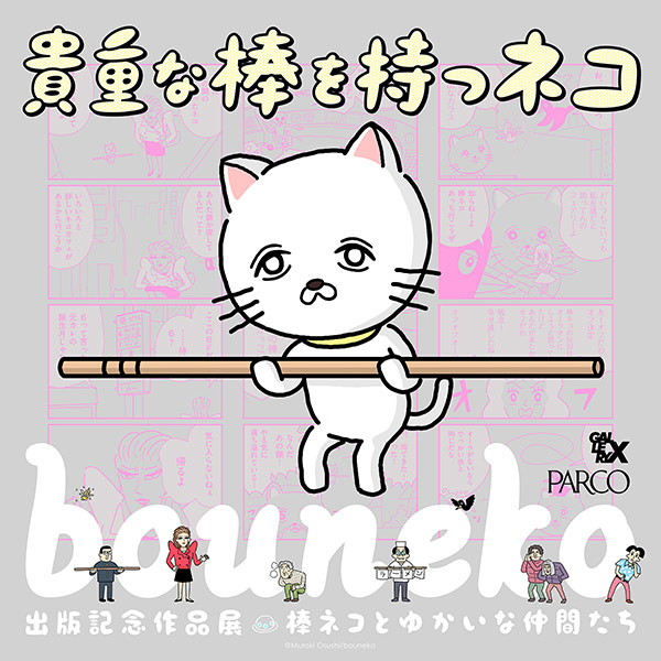 2021年4月23日(金)から5月10日(月)まで、渋谷パルコ B1FのGALLERY Xにて“「貴重な棒を持つネコ」出版記念作品展 棒ネコとゆかいな仲間たち”が開催される。「貴重な棒を持つネコ」は、イラストレーター/漫画家の室木おすし氏によるTwitter漫画(https://twitter.com/bouneko11)。展覧会初日に株式会社KADOKAWAから単行本が発売予定で、本展では書籍で描かれた新アートや、描き下ろしの限定公開アートなどが展示される。