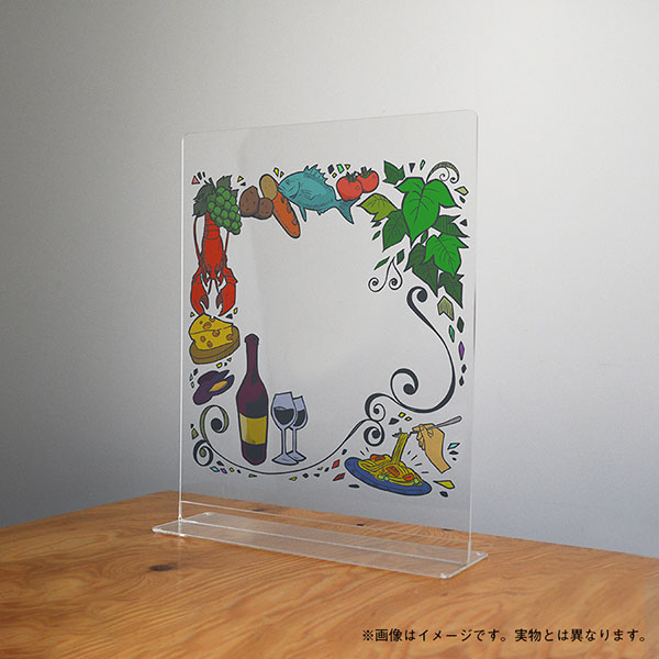 「アクリルパーテーション“JOYPANE”」は、アーティストの作風はそのままに、居酒屋やカフェなどに設置しやすいよう制作した製品。「置かなくてはいけない」から「置いておきたい」となることを目指した、眺めているだけで楽しい気分になれる仕上がり。
