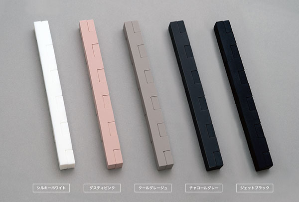 シンプルでモダンな5色展開で、「ジェットブラック」、「シルキーホワイト」、「チャコールグレー」、「クールグレージュ」、「ダスティピンク」を取り扱う。繊細なシボ加工を全体に施しているので、マットで落ち着いた質感。
