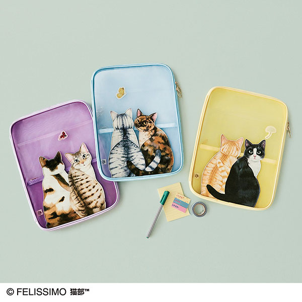 フェリシモ、窓の外が気にする猫を表現したA4ファイルポーチを発売