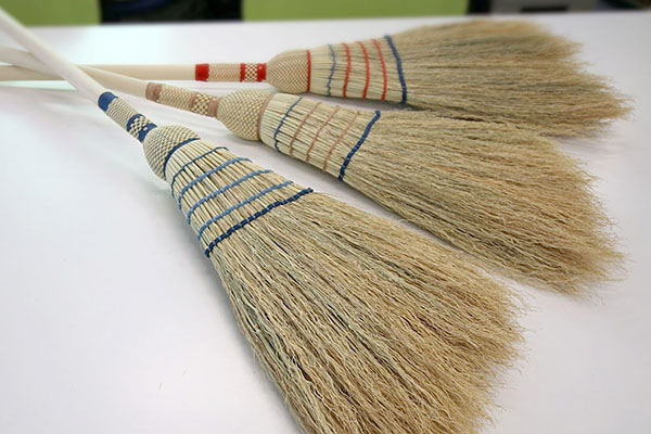 「オーガニック小箒」のサイズは長さ80cm×横幅25cm。箒の摘み取りから編み上げまですべて手作業で行っている。