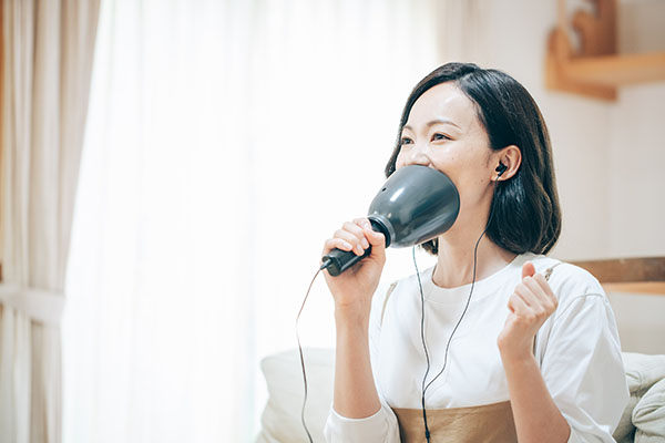 「一人deカラオケDX-V2」は、カラオケアプリで採点や録音ができる製品。「一人deカラオケDX」の最新機種にあたる。マイク本体にミキサー機能を搭載しているので、カラオケのようにエコーを効かせて歌うことが可能。つまみを調節するとマイクボリュームを簡単に操作できる。
