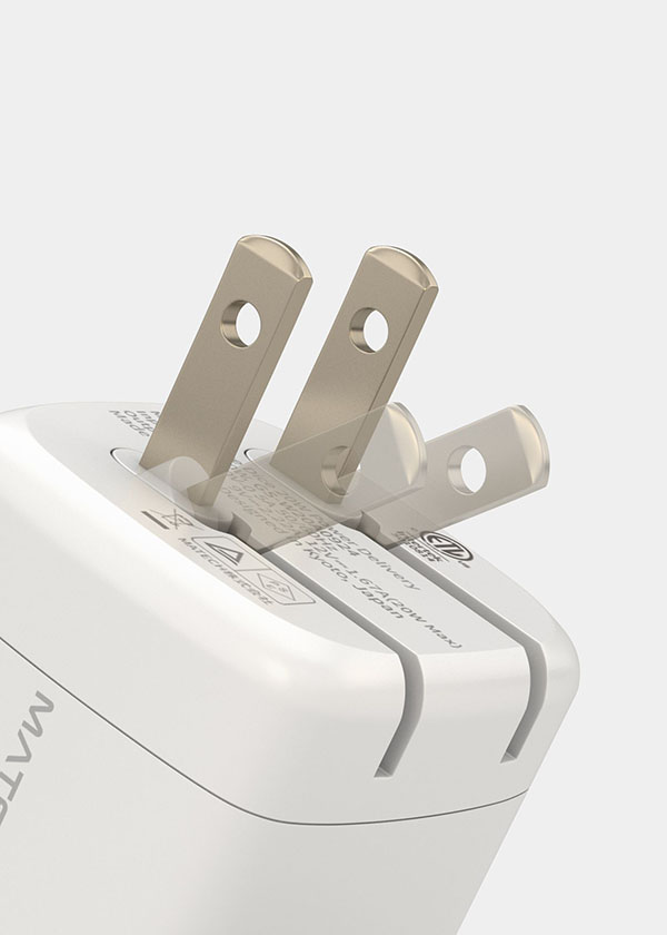 折りたたみ式プラグを採用しているので、プラグ部分を収納して持ち運びができる旅行や出張などに便利な設計だ。カラーバリエーションは1種類でホワイトを展開。